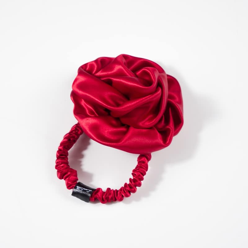 Jedwabna Gumka Do Włosów Z Różą Czerwona + 2 Gumki Gratis