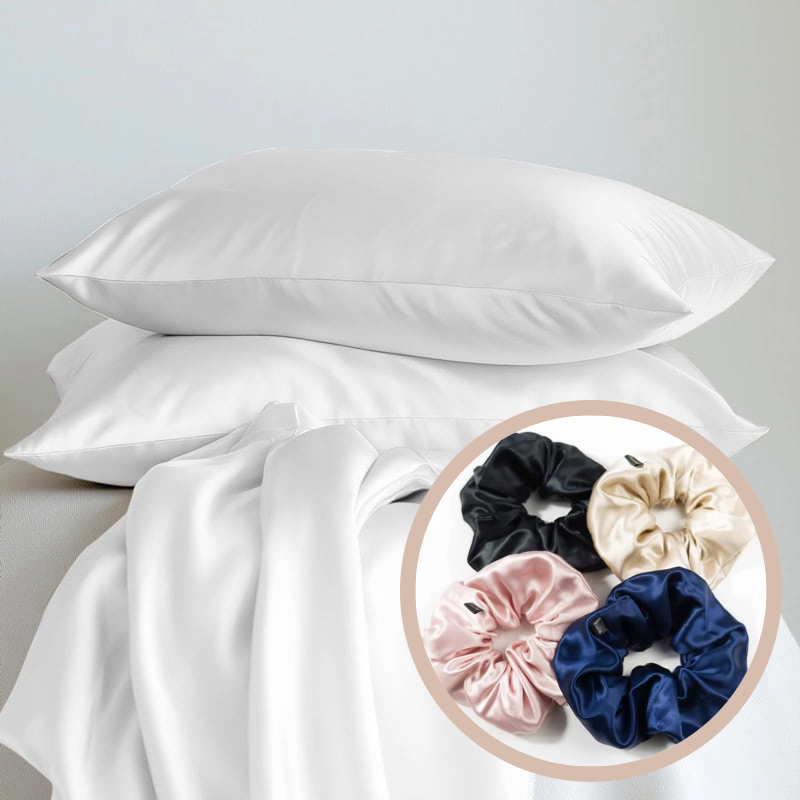 Jedwabna Poszewka + Jedwabna Gumka do Włosów ZESTAW PROMOCYJNY Ecru + 4 Gumki GRATIS