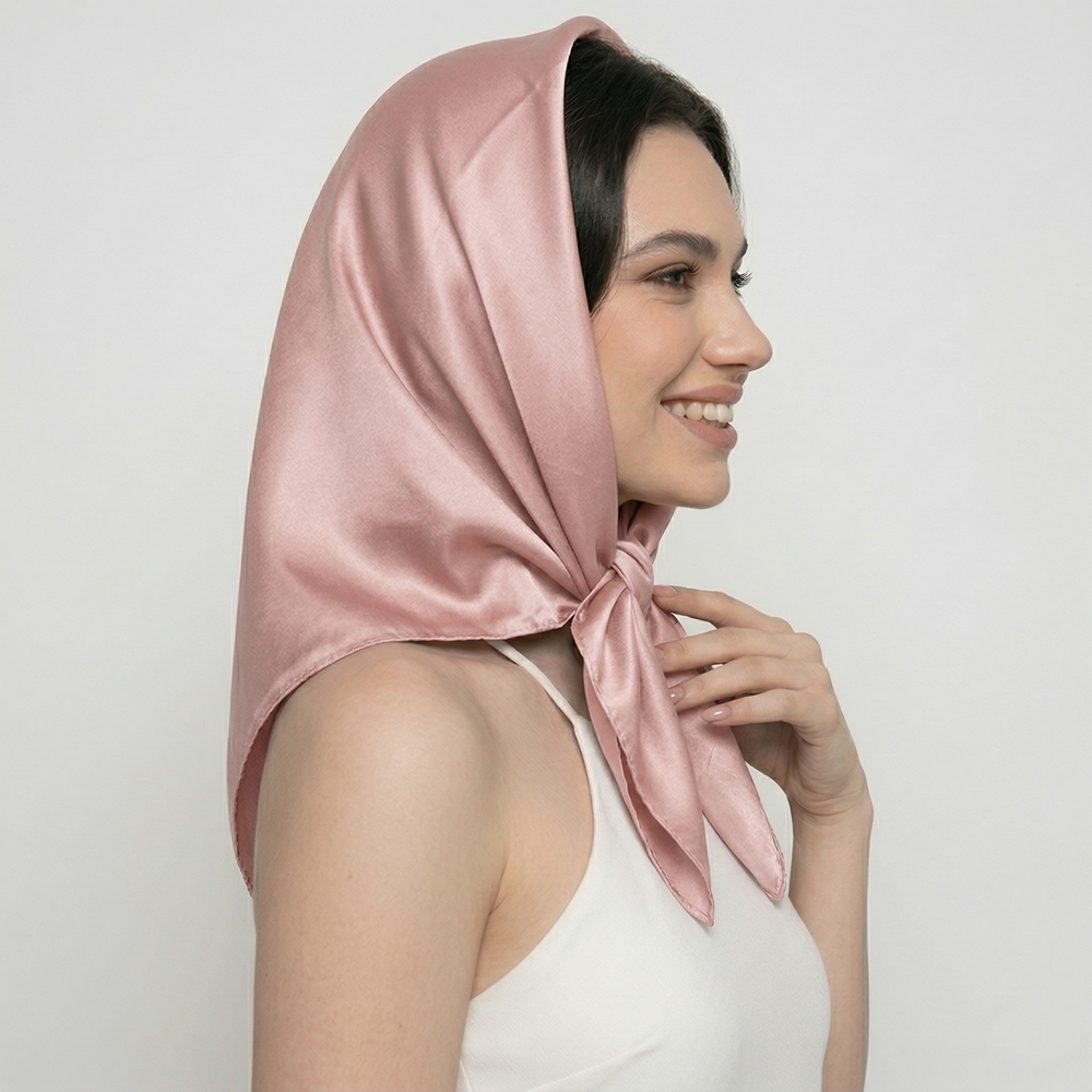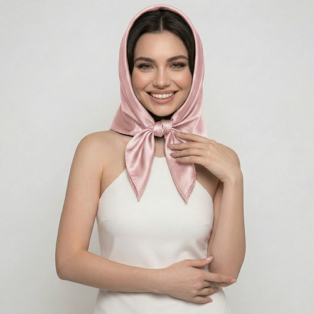 Jedwabna Apaszka Pudrowy Róż + 2 Gumki GRATIS