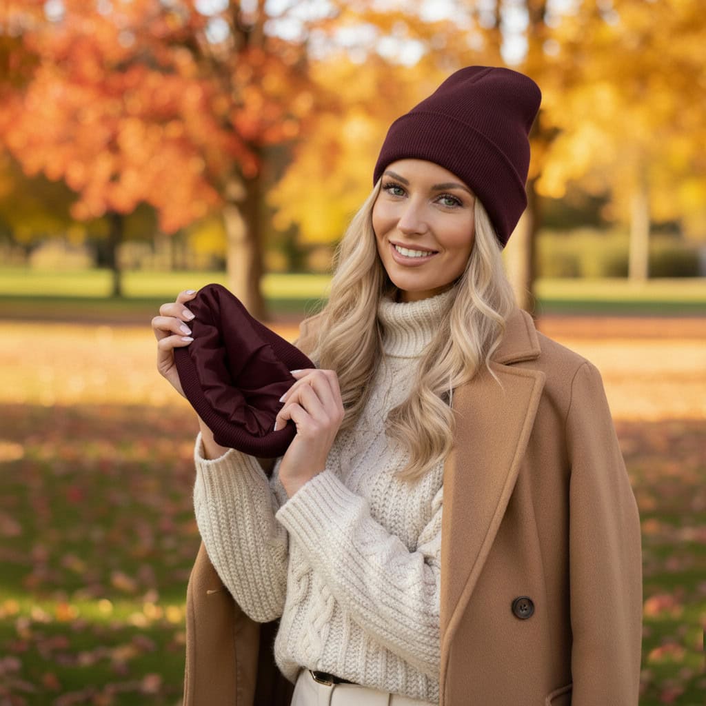 Oto dowód, że modny dodatek może jednocześnie dbać o zdrowie Twojego włosów. Daj swoim włosom szansę na ekstra blask i zdrowy wygląd z naszą czapką z jedwabną podszewką!