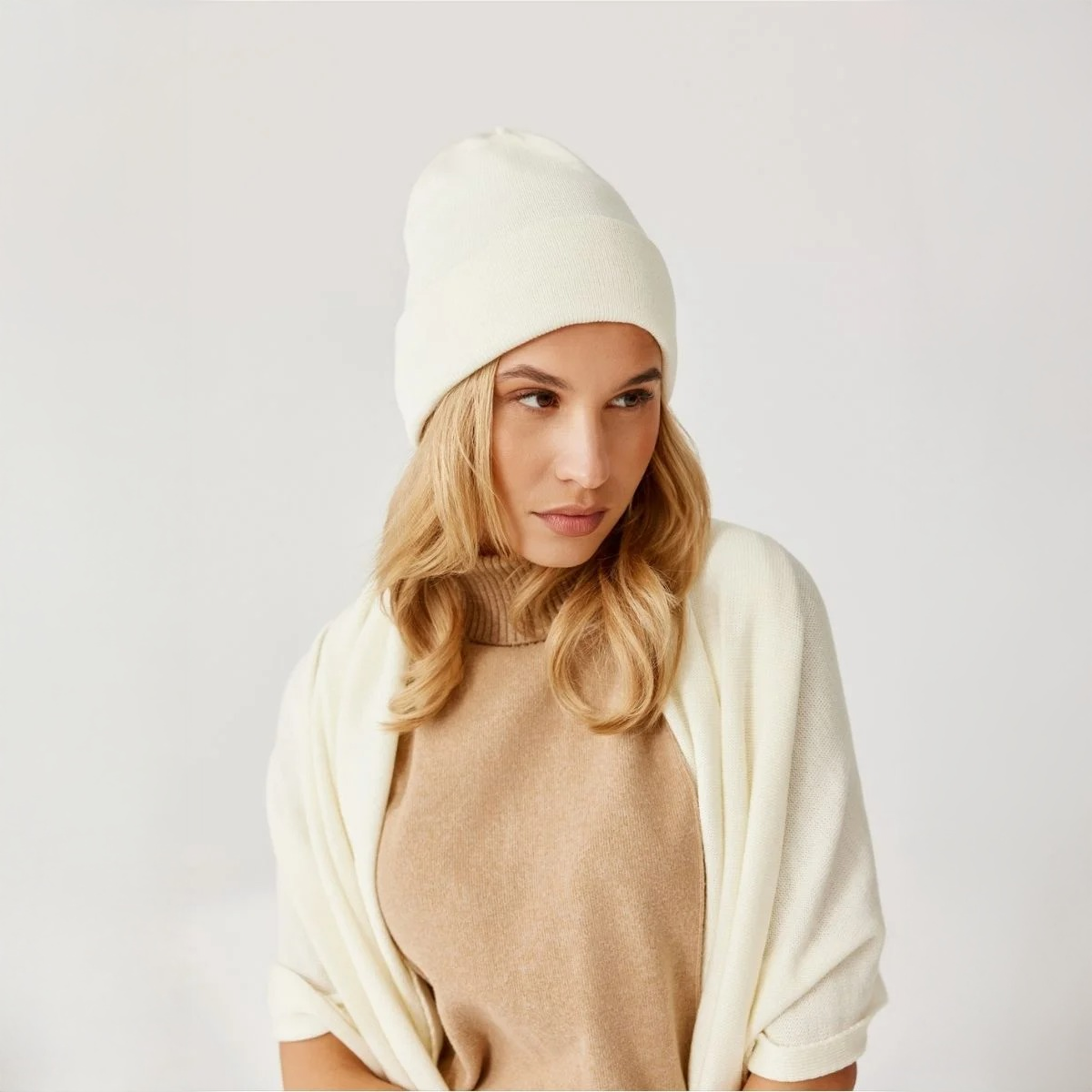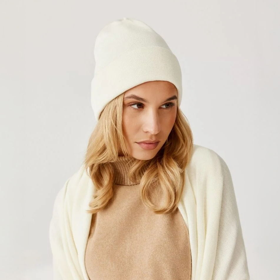 Czapka z jedwabną podszewką ecru 100% wełna merino + 2 Gumki GRATIS