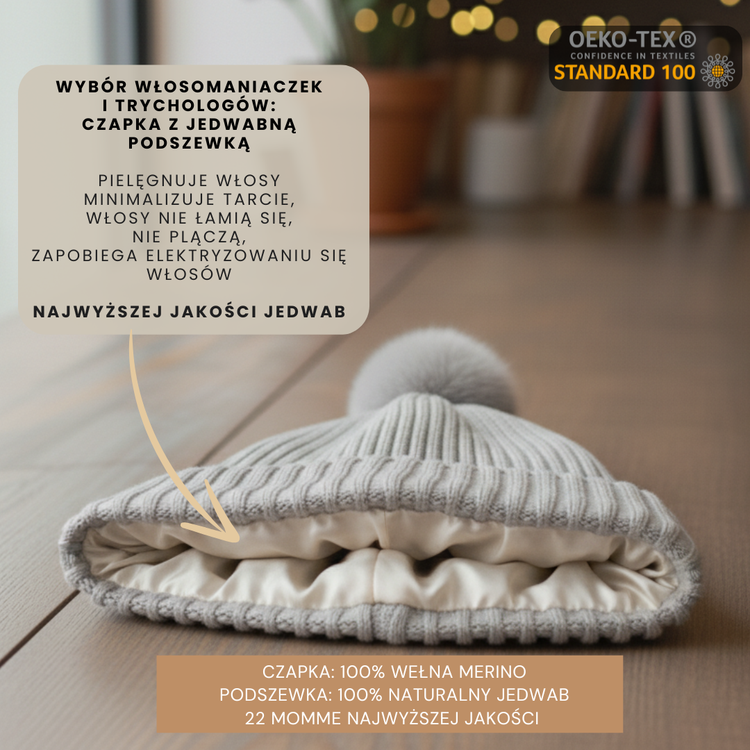 Wybierając LoveSilk, inwestujesz w najwyższą jakość, która idzie w parze z codziennym rytuałem pielęgnacji Twoich włosów. To nie tylko stylowy dodatek, ale przede wszystkim przemyślana, naturalna ochrona ich struktury. Dzięki połączeniu szlachetnej wełny i jedwabiu, produkt zachowuje swój nienaganny fason i właściwości przez wiele sezonów, dbając o Twój wygląd w każdą pogodę.