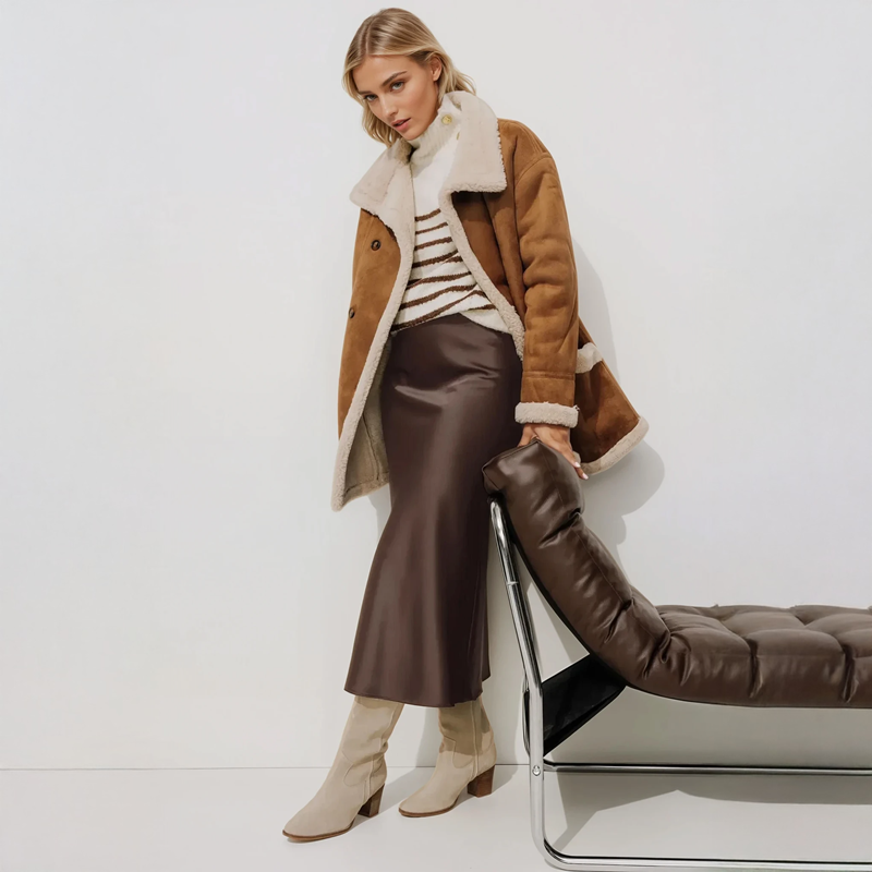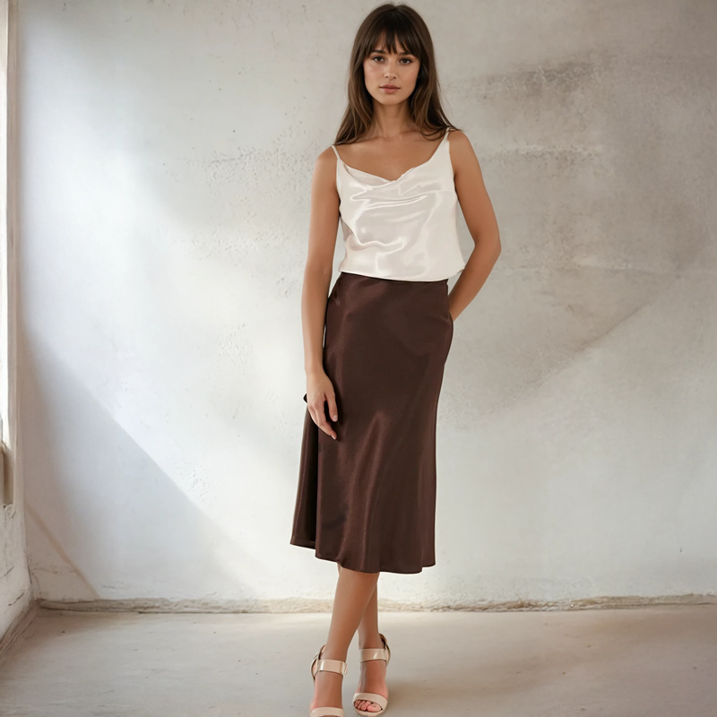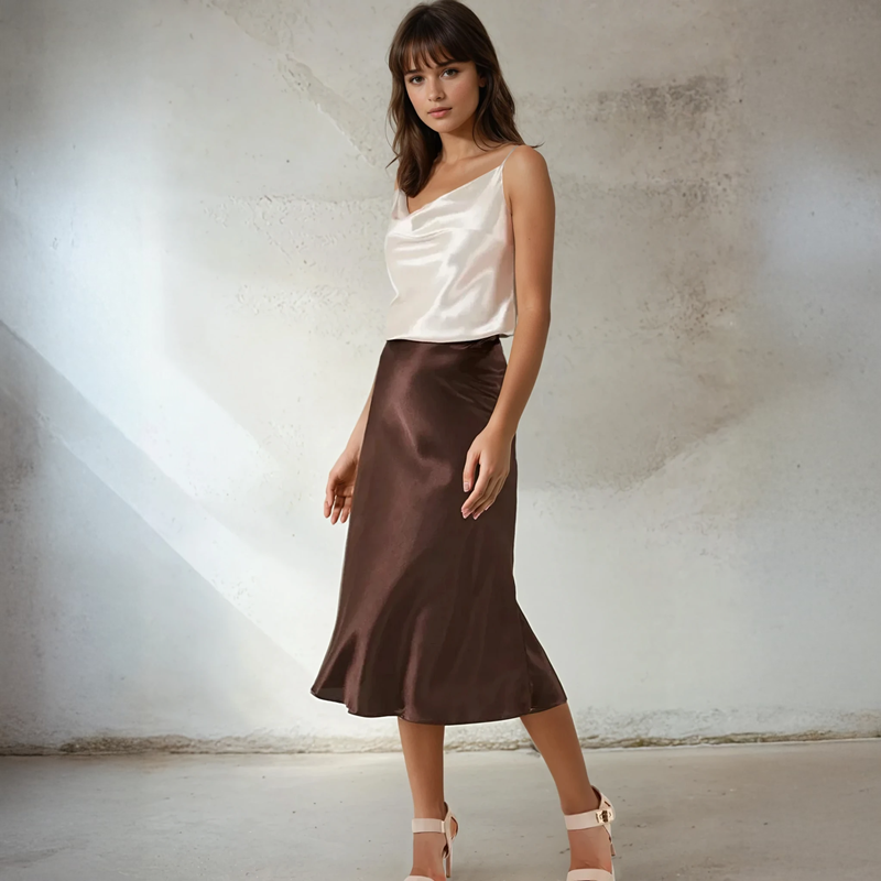 Jedwabna Spódnica Brązowa + 2 Gumki GRATIS